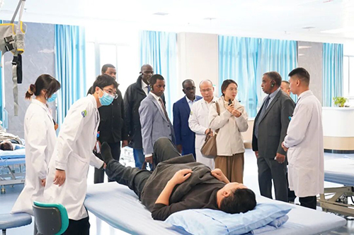 段德正代表医院对乌马尔院长一行的来访表示热烈欢迎,并陪同代表团先后参观医院中药房、煎药室、针灸康复科、中医护理门诊、治未病科等科室,在参观过程中,代表团深入了解中药辨识与配方特色,观摩了煎药工艺与免费代煎配送服务,并现场体验了推拿、中药烫熨、中药杵针、葫芦灸等中医特色技术,对医院在中医药领域的创新发展给予高度评价,深切感受到“未病先防”的中医健康理念。