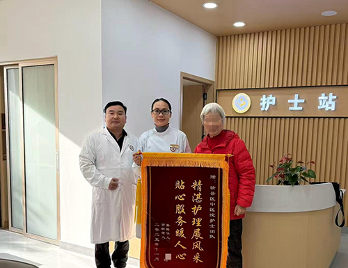 11月28日上午,在城南门诊部上演一场温馨场景。一位80多岁的刘奶奶受远在他国的女儿委托,将2面分别印有“医德高尚暖人心医术精湛传四海”“精湛护理展风采贴心服务暖人心”的锦旗,郑重地交到了赣州市赣县区中医院城南门诊部副主任唐声均和黄素春护士长手中,感谢其用精湛的中医技术治愈了她多年的严重颈椎病。